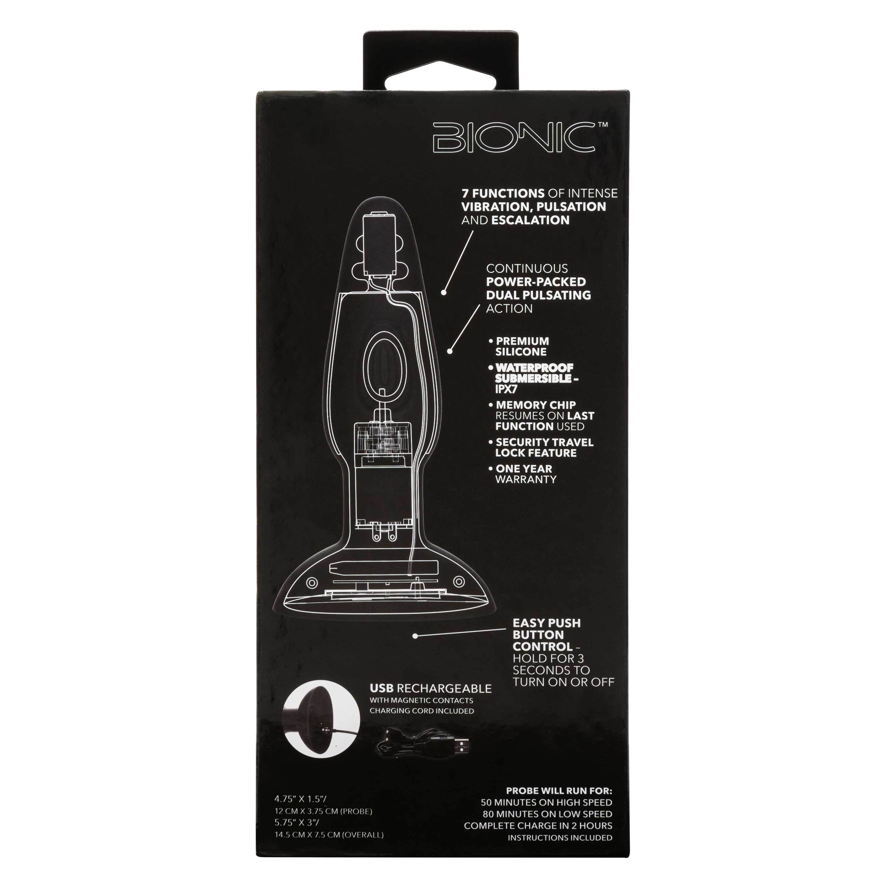 Ride the waves of ecstasy towards uncharted territories of pleasure with the CalExotics Bionic Dual Pulsating Probe. The 7 functions of intense vibration are paired with a sleek submersible plug and continuous dual pulsating action.