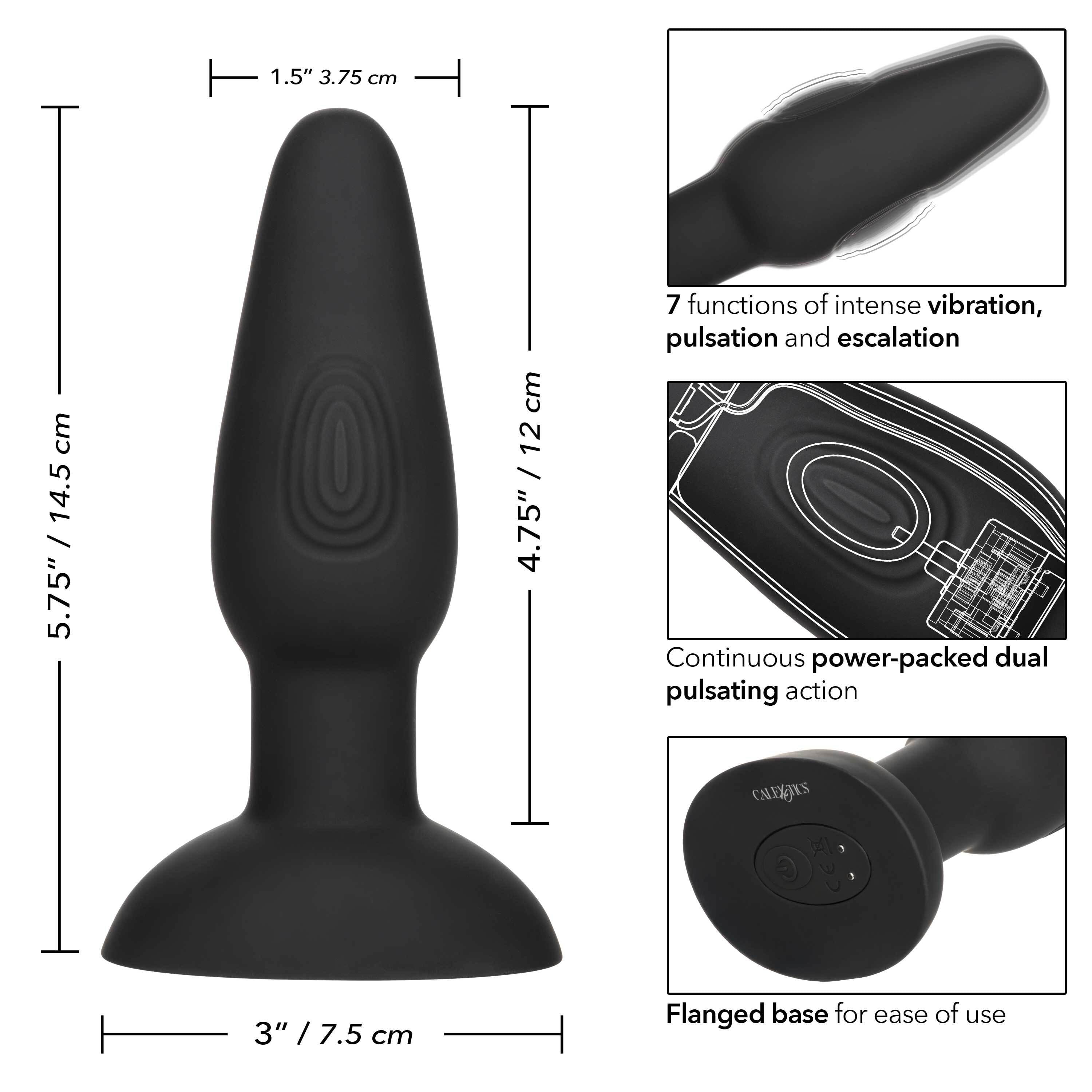 Choose the intensity of your pleasure and take a wild ride with the 7 knee-shaking functions of vibration. The dual pulsating action delivers rumbling backdoor stimulation, while the contoured base and firm body deliver during your most X-rated moments. Enjoy comfortable insertion, effortless stimulation and gentle removal with the flanged base and powerful motor.