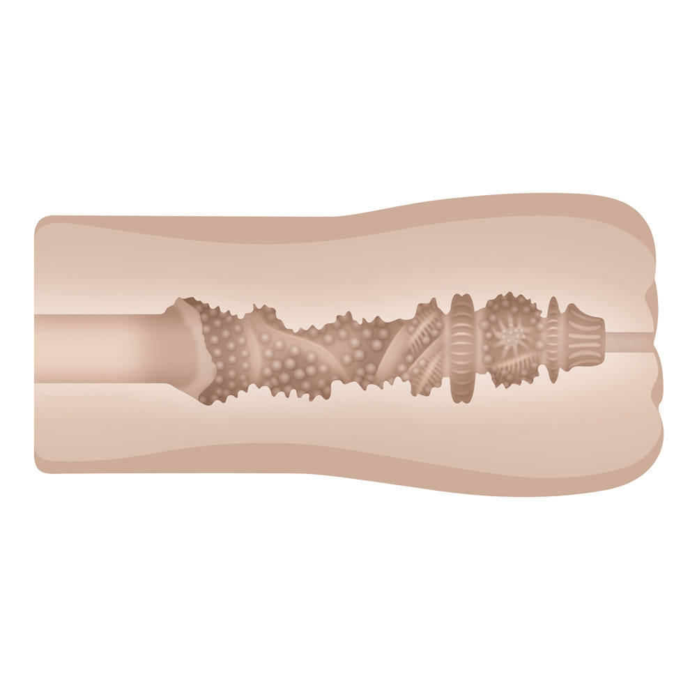 This life-like stroker not only sucks and vibrates with two powerful independent motors, but it also flexes and squeezes to meet your desire with every stroke. The dual-layered material feels deliciously realistic to the touch with a soft inner layer and firmer outer layer and plenty of texture inside the channel.